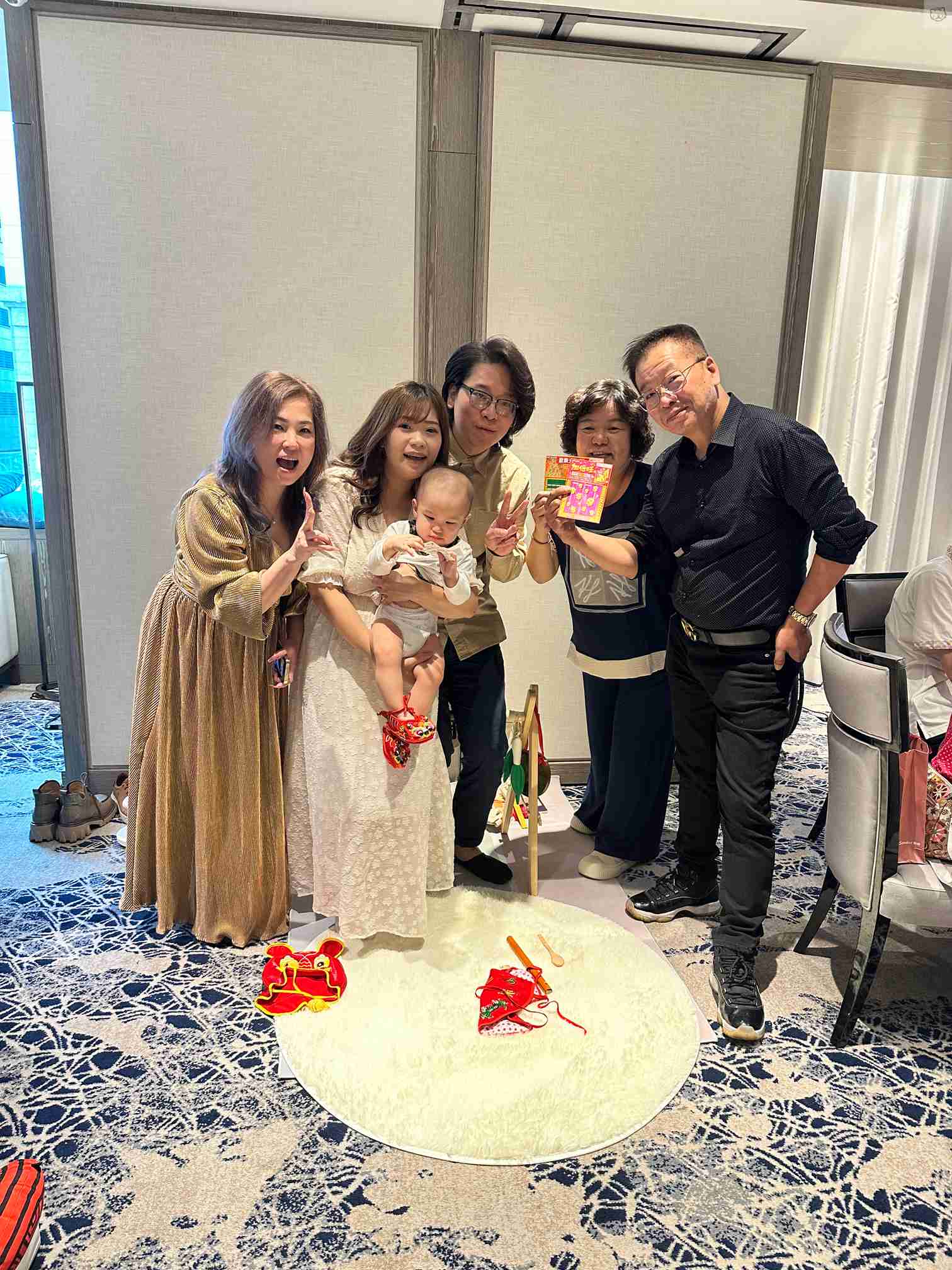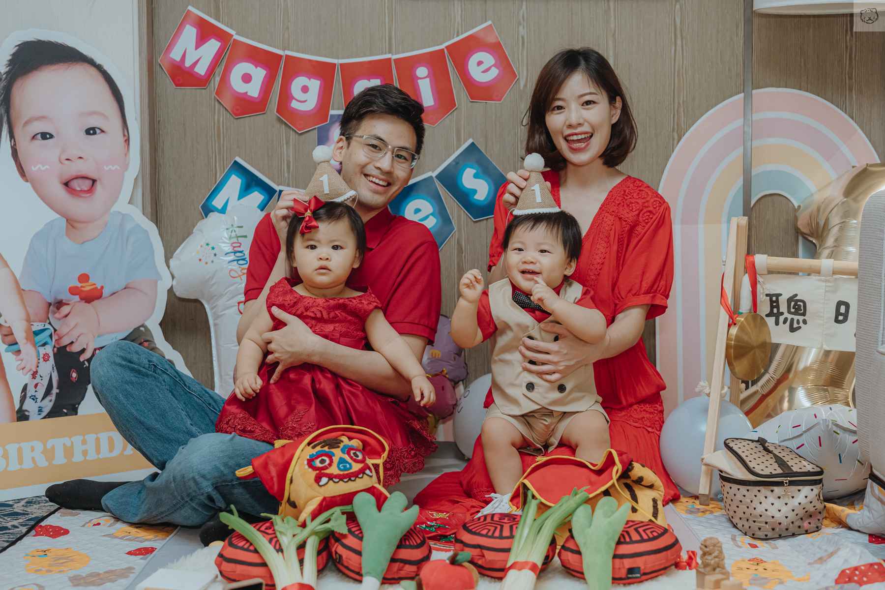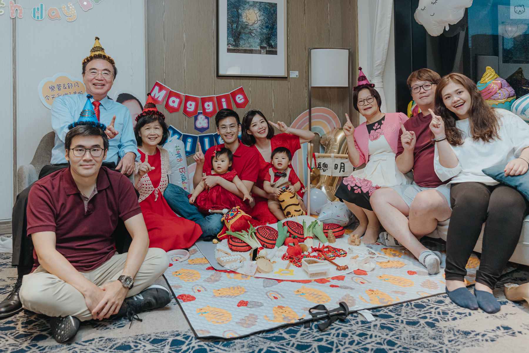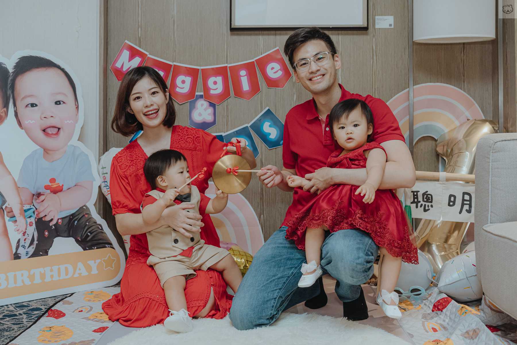 因為除了歡慶寶貝周歲外,還要給今年步入結婚40周年紅寶石婚的阿公阿嬤一個小小慶祝驚喜!(阿公也有配合dress code戴紅領帶)