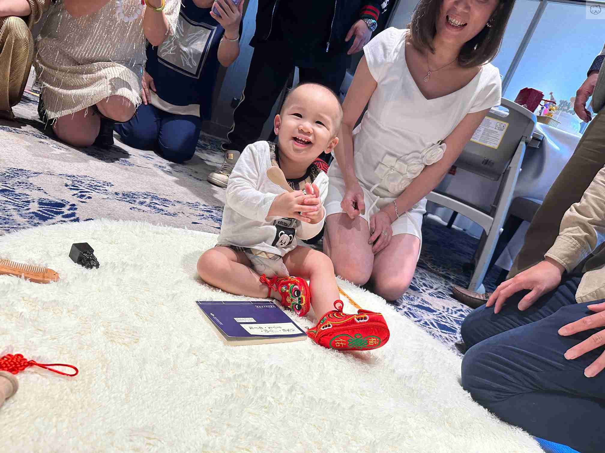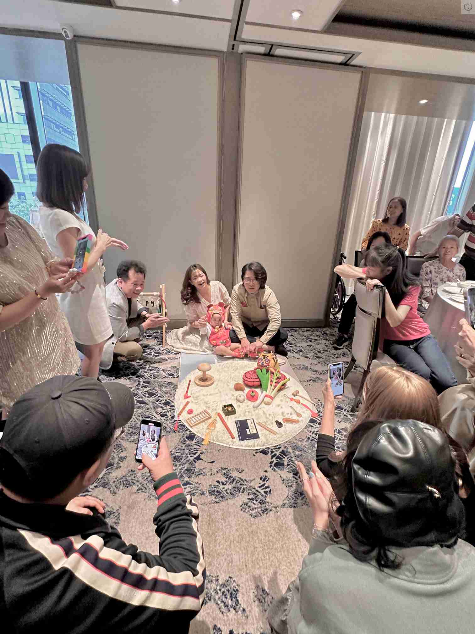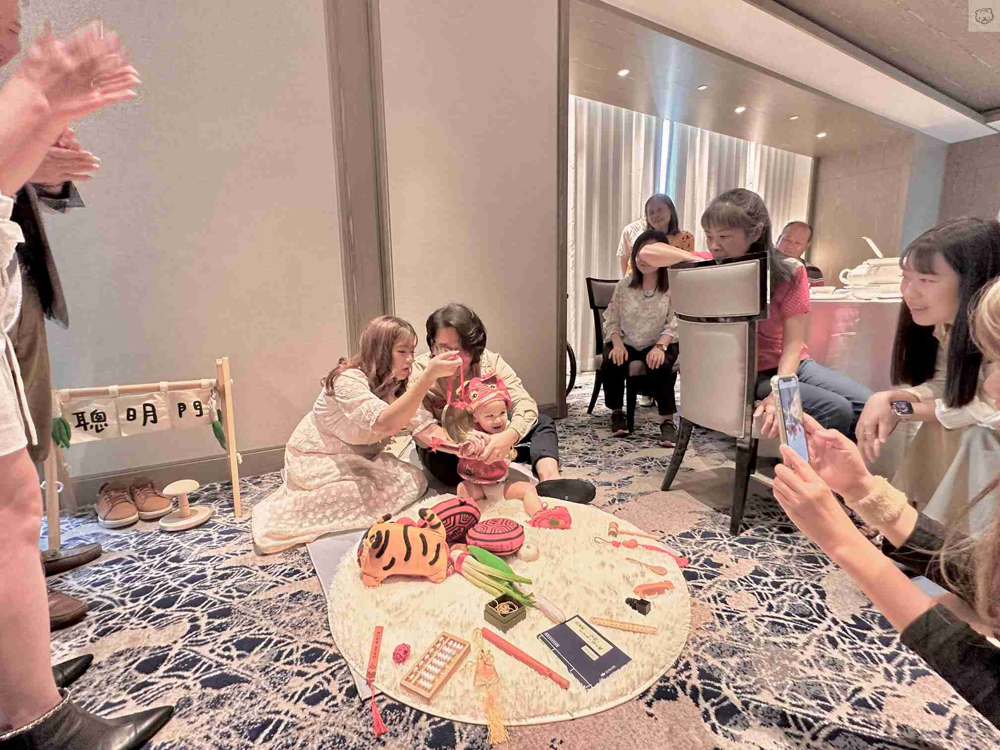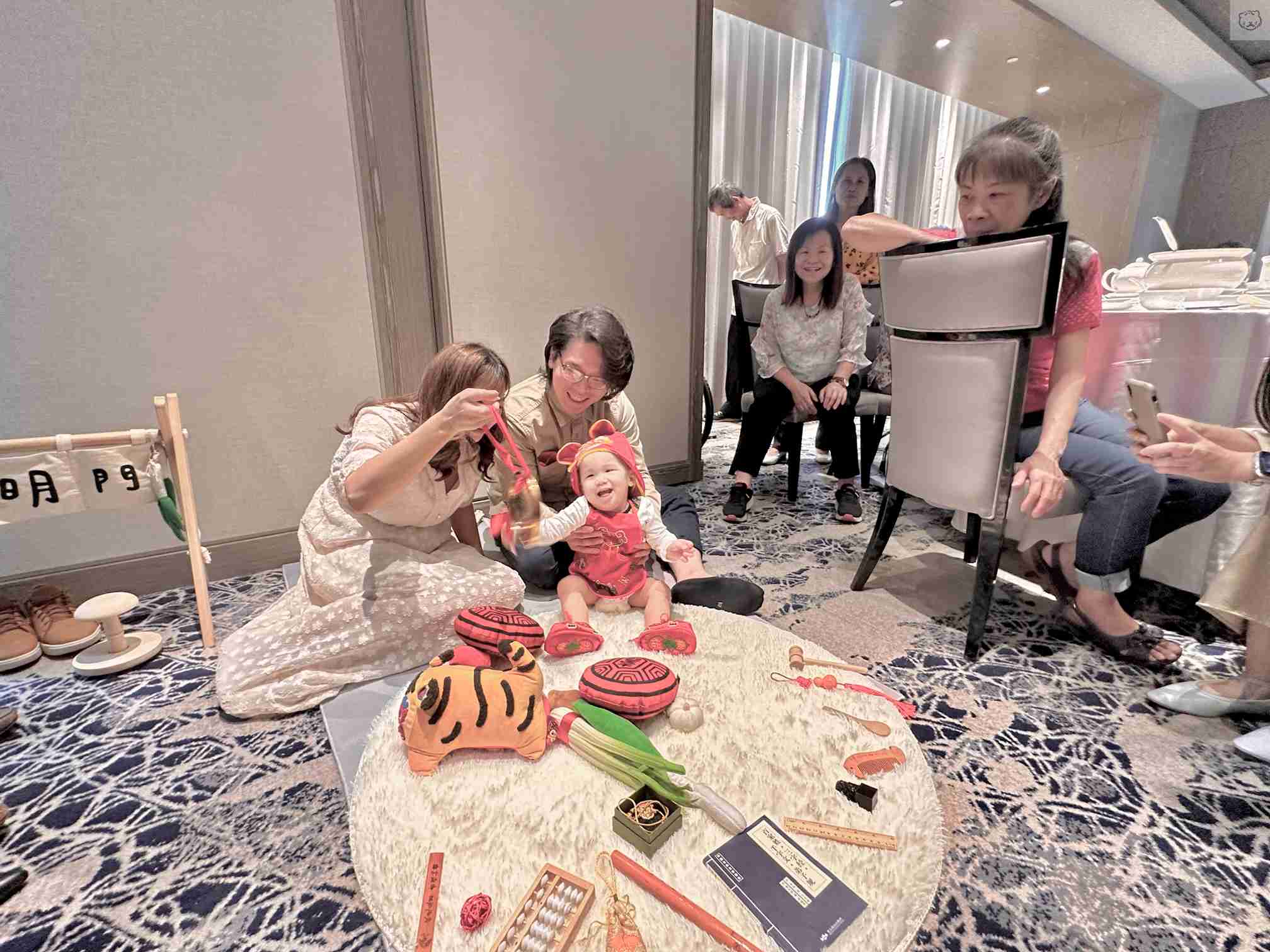 可愛、活潑的寶寶全程彷彿聽得主持人的指令,完美執行每一個抓周禮俗
