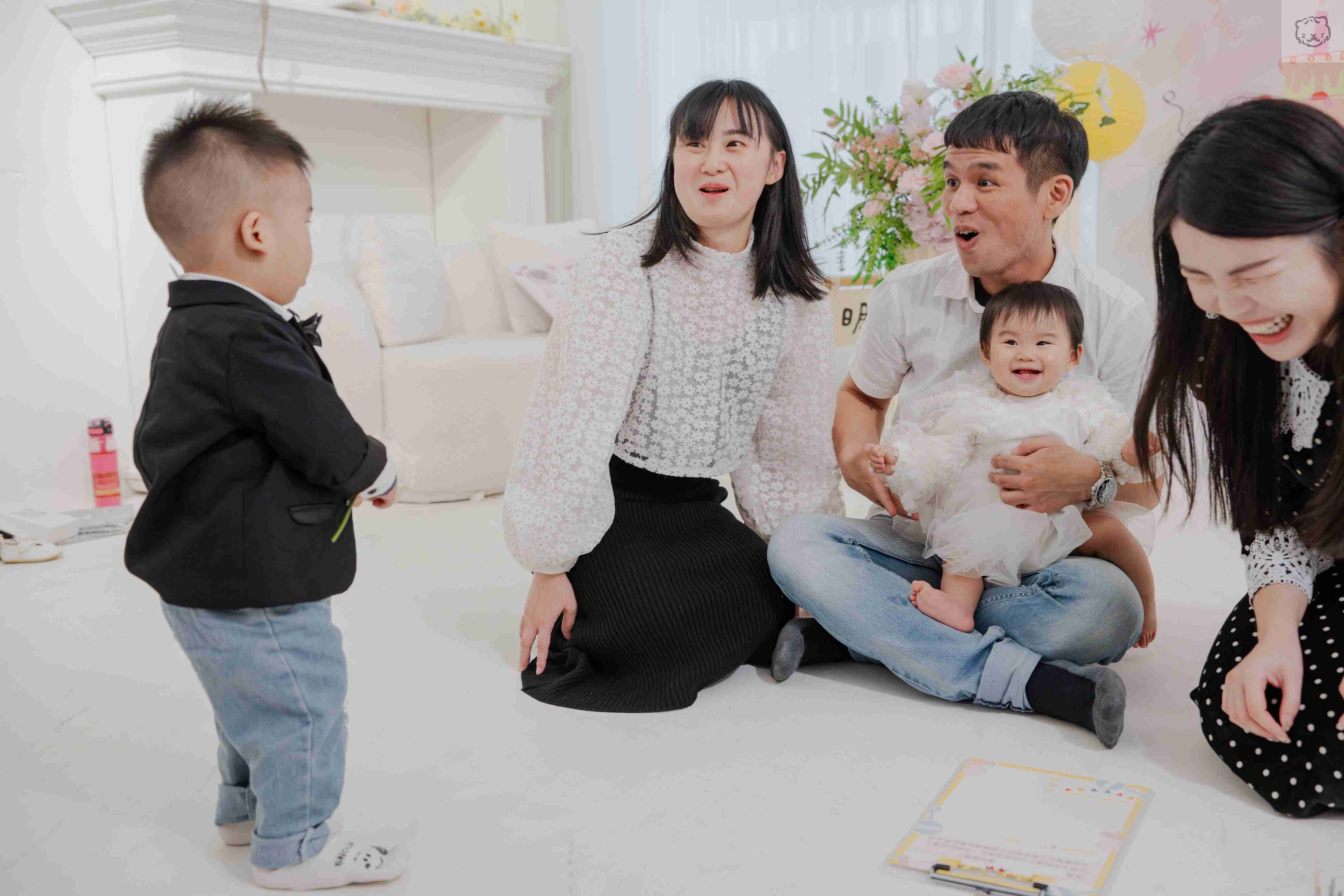 活動間蹦發出許多有趣的插曲,像是要倒噴泉水時因為天氣太冷一度凝固,甚至還有小哥哥摘了蛋糕邊上的花獻給寶寶,滿滿的歡笑、充滿愛的記憶更鮮明的印烙在每一個人的心底