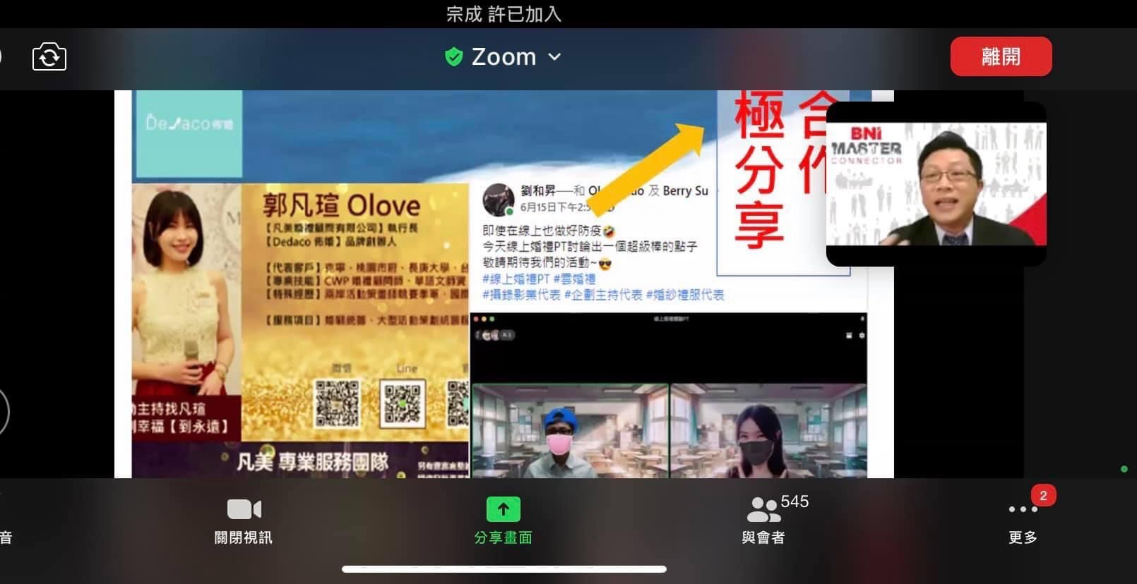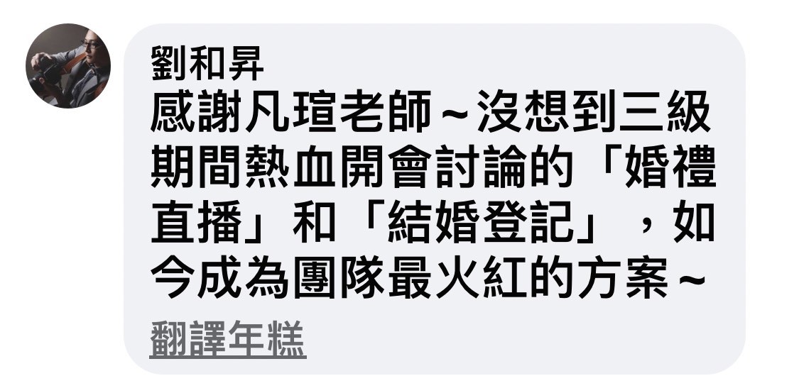 一戰成名的線上婚禮,被許多商會友會夥伴拿來激勵許多當時飽受疫情所苦的產業老闆