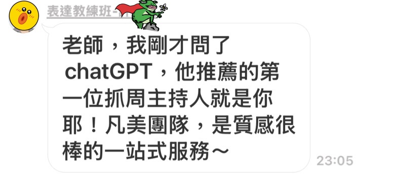 感謝主持人活動前用心的安排瑣碎事宜,貼心的預想到當天會遇到各種可能,才能讓活動順利完成!尤其總監主持功力一流,溫柔的聲線及口語流暢度吸引現場嘉賓目光,臨場反應超棒,之前看過影片就深深烙印在我心底,實在非要她不可,臨場反應超棒,還貼心的切蛋糕及幫忙收拾我們自己準備的佈置用品,連老公都說說主持的超棒跟滿分!!!就知道我們非常滿意,以後有機會一定會找凡美合作!!!萬般感謝