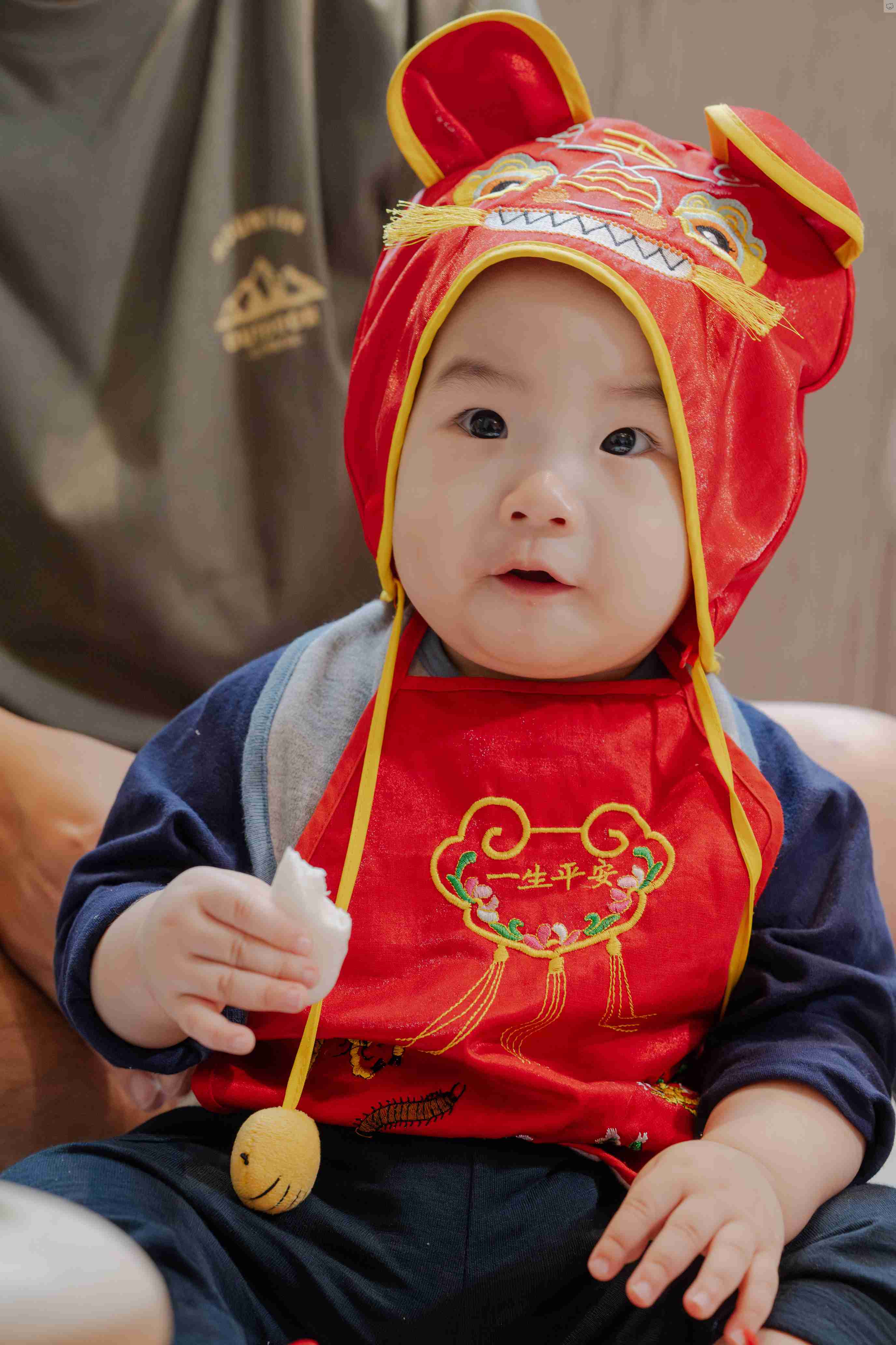 抓周當天寶寶令眾人羨慕的大眼睛炯炯有神,模樣超級可愛!