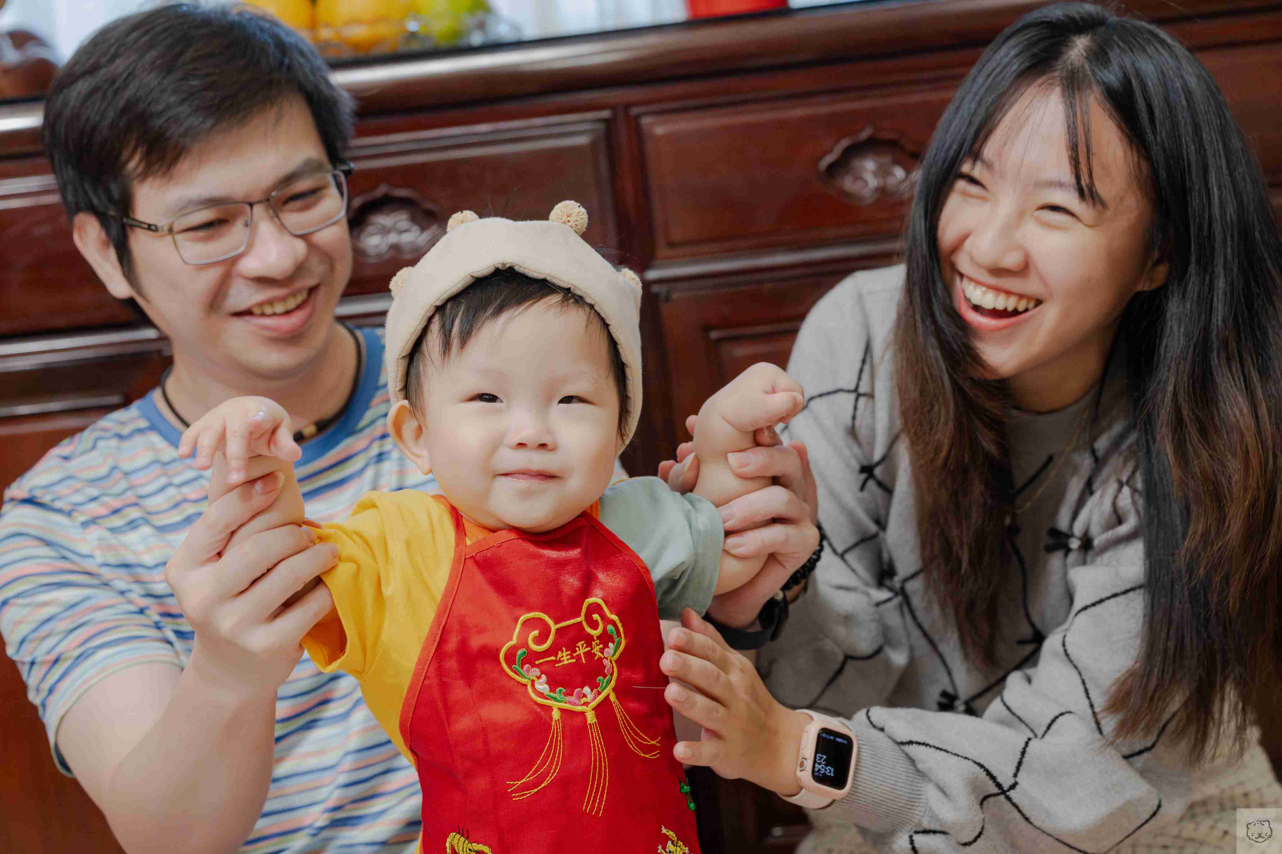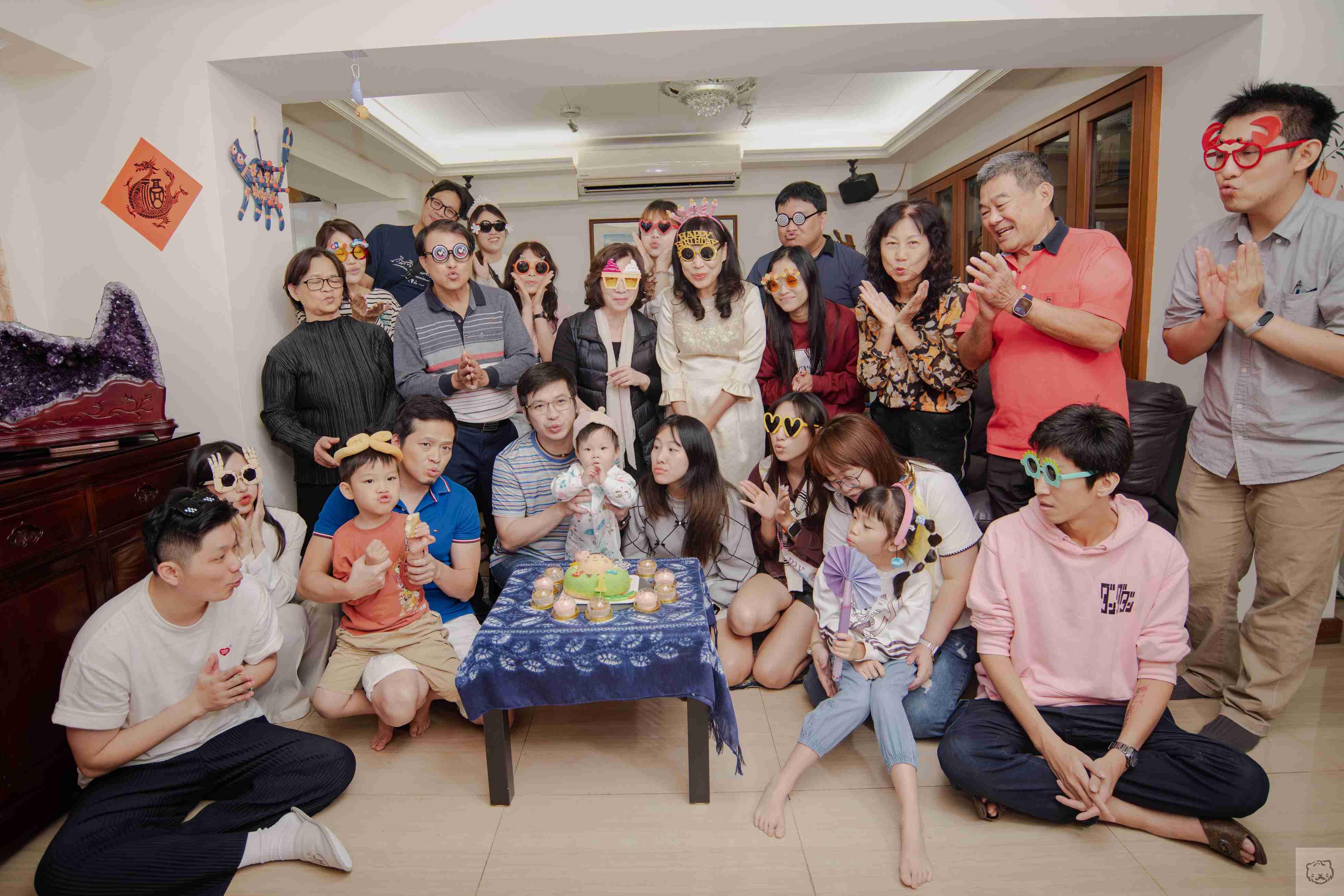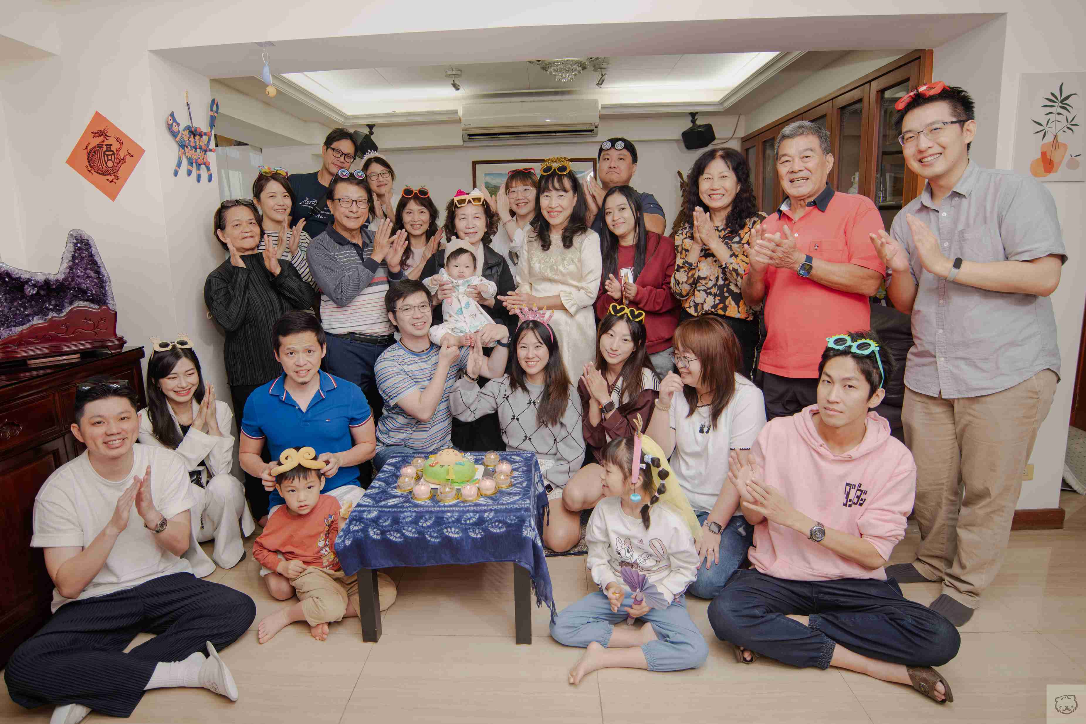 家人們圍成一圈,像替他撐起一個小小的宇宙,寶寶坐在正中央,是所有人目光的答案