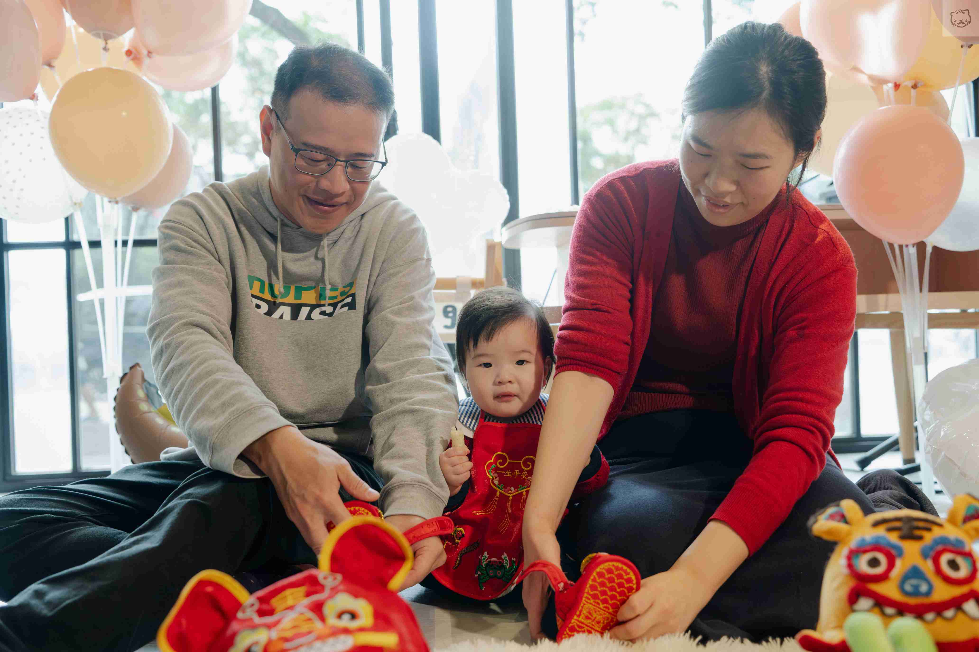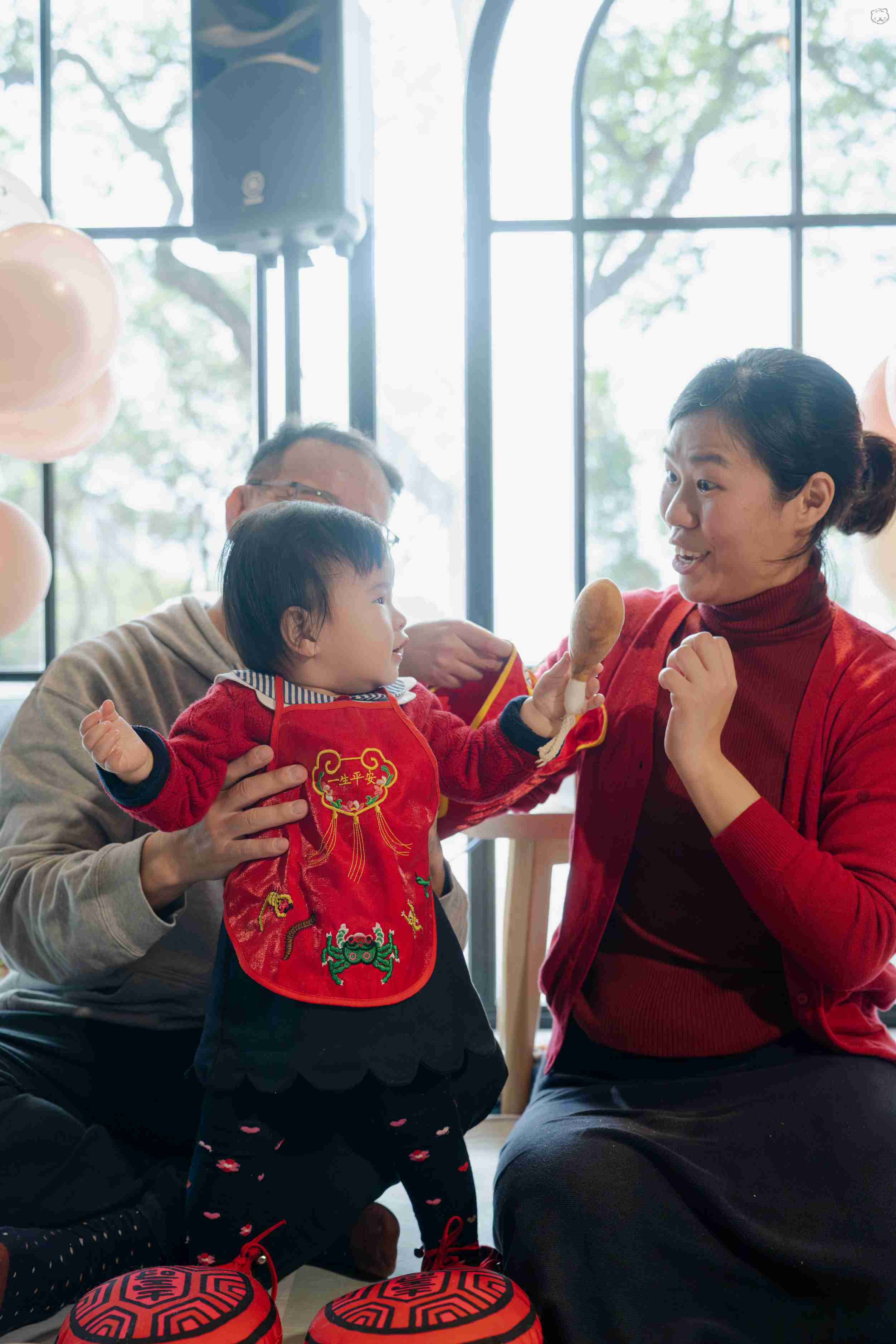 家人們貼心支援的背影,讓這場抓周不只是儀式,更是一面映照愛的鏡子